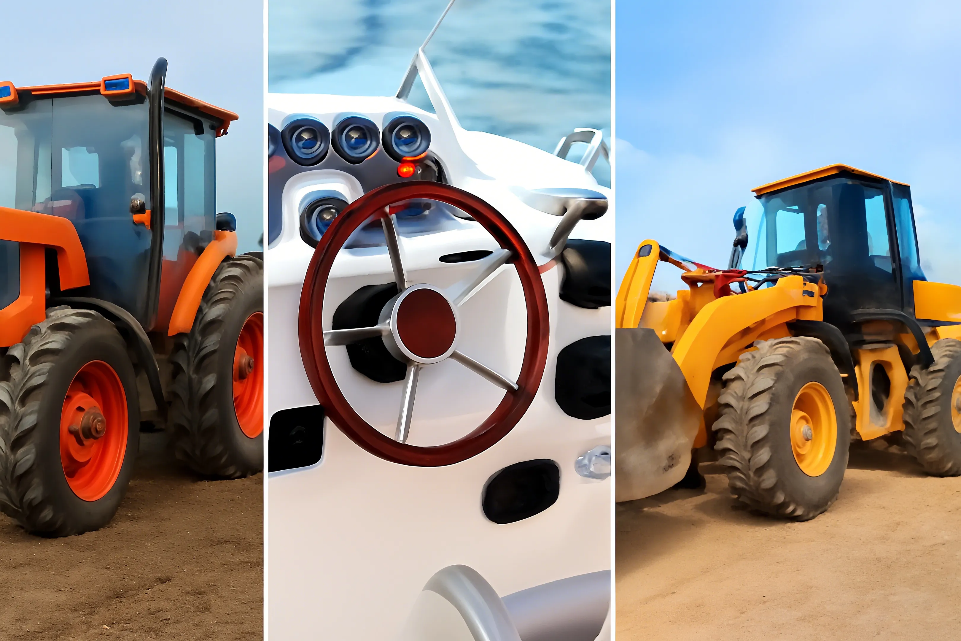 ၎င်းသည်လယ်ယာမြေများနှင့်လှေများသာမကသာဖြစ်သည်။ ဤဆလင်ဒါများသည်ဆောက်လုပ်ရေးဂီယာ, forklifts, သစ်တောစက်များနှင့် loader များတွင်လည်းအသုံးပြုကြသည်။ ဤစက်များတွင်သူတို့သည်ရှေ့ 0 င်ရိုးစတီယာရင်နှင့်အတူကူညီသည်သို့မဟုတ်ယာဉ်သည်ပူးတွဲဘောင်တစ်ခုရှိပြီး၎င်းကိုဖော်ထုတ်ရန်လိုအပ်သည့်အခါကူညီသည်။